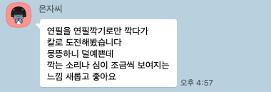 무슨 일이든 작은 시도들이 먼저죠. 거창한 걸 해보려고 하면 시작하기조차 어렵다는 거 다들 아시죠? 카페에서 처음 먹어보는 커피를 마시고, 칼로 연필을 깎아보고, 처음으로 가계부를 써보는 거죠!