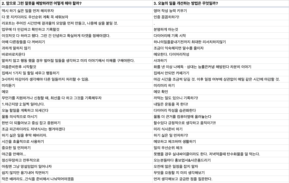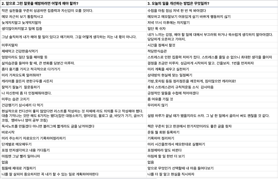 2. 매일 밤 하루를 끝내기 전 10분 간 채팅방 공지에 있는 인증 폼에 가서 아래 질문 3가지로 하루를 리뷰 합니다.