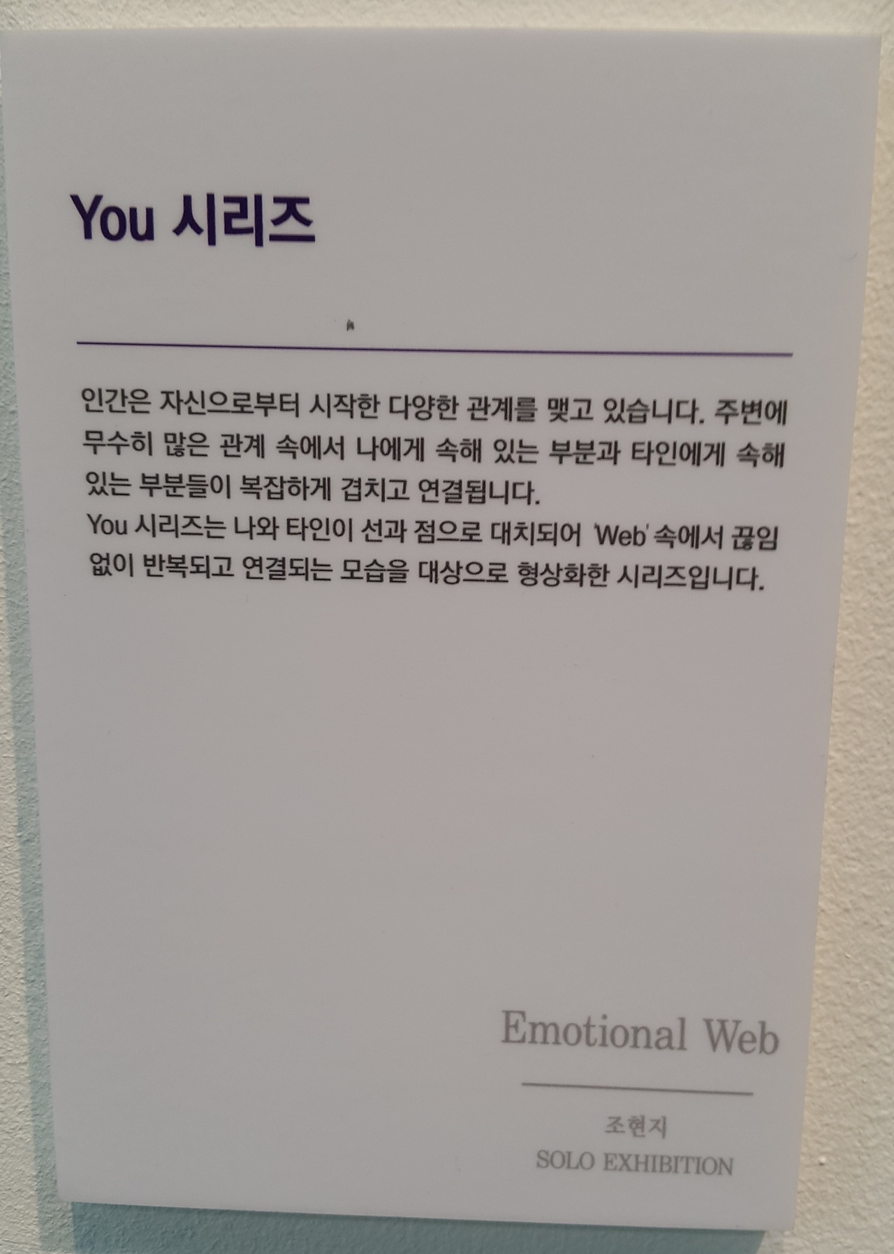 조현지님의 작품이 "Emotional Web"이라는 주제로 전시 중이었습니다.