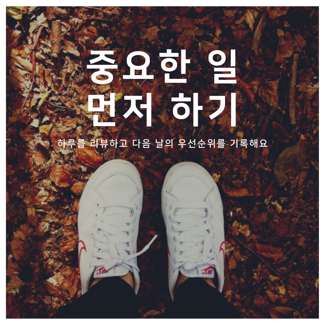 중요한 일 먼저 하기 모임 : 항상 할 일은 많고 늘 바쁘죠? 그런데 정작 돌이켜 보면 뭐 하나 뚜렷이 해놓은 건 없잖아요? 늘 시간이 부족하다고 느껴지고, 할일은 쌓여만 갑니다. (쳐내는 속도보다 쌓이는 속도가 항상 더 빠르죠!) 그런데 여러분 객관적으로 내가 하는 일을 생각해 보자고요. 해야할 일 중 중요하지만 급하지 않은 일이 있고, 중요하진 않지만 급한 일들이 있죠. 여러분이 열심히 처내고 있는 일은 어떤 분류의 일인가요? 혹시 중요하진 않지만 급한 일들을 열심히 처리해 나가고 있진 않나요? 그렇다면 변화가 필요한 시점 입니다. (링크)