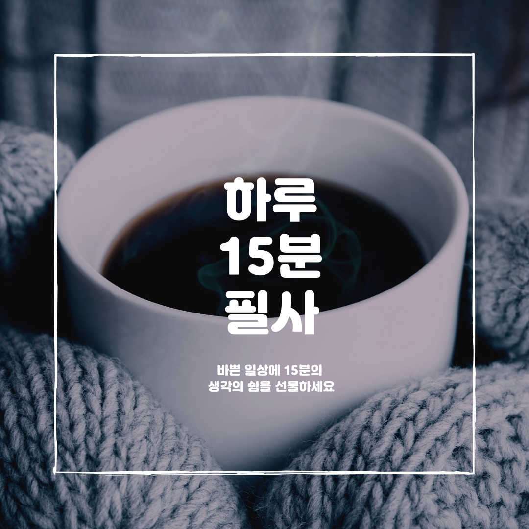 하루 15분 필사 모임 : 매일 반복되는 일상의 관성에서 여러분의 생각을 깨워줄 도끼 같은 문장을 전달드립니다. 손으로 필사하면서 마음에 새겨 보고, 삶에 적용해 보는 그런 모임. 함께 하실래요? (링크)