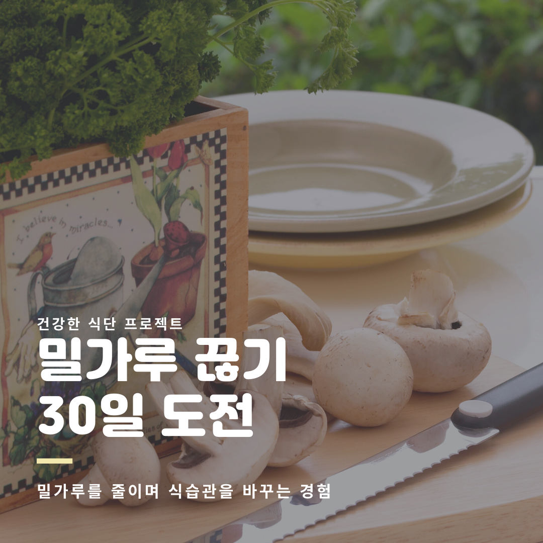 밀가루 끊기 30일 도전 모임 : 정말 쉽지 않은 도전이었죠! 하지만 하길 정말 잘했다는 생각이 든 모임이었어요. 식습관도 건강하게 개선했고, 몸무게도 7킬로나 빠졌거든요. 도전을 시작하시면 세상에 음식이 두 가지로 보일 겁니다. 밀가루가 포함된 음식과 그렇지 않은 음식!! 물건을 살 때 식품 성분표를 꼭 보게 되실 거고요. 건강한 식습관을 만들어 보세요~ (링크)