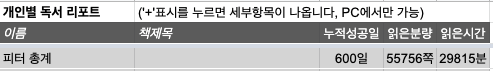 저도 며칠 전 드디어 600일을 맞이했습니다. 이 기간 동안 총 29,815분을 책을 읽으며 55,756쪽의 페이지를 읽었네요. (사실 1일 차부터 데이터 집계를 시작한 건 아니라 이보다 더 되긴 할 거예요) 완독 한 책은 200권이 조금 넘습니다. 이제는 정말 독서가 습관이 되었고, 오히려 올해는 그간 정리한 내용들을 실행해 옮기는 것에 더 집중하기 위해 책 읽기 목표 권수를 작년보다 줄였습니다.