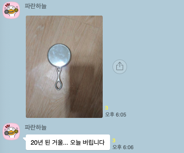 20년된 거울을 버리신 분도 있었네요. 근데 20년된거 치고 깨끗하다고 물어봤는데, 안 써서 깨끗한거라고...ㅎㅎ