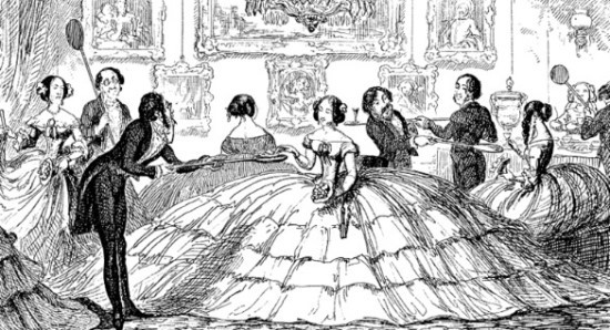 당시 여성들은 계급 간의 구별짓기 또는 같은 계급 간의 성적인 매력, 부와 명예를 과시하기 위해 크리놀린을 더욱 화려하게 꾸미거나 크기를 늘렸습니다. 크리놀린은 고래 뼈와 철사가 옷의 틀인데 계급간 기괴한 경쟁으로 옷의 불편함이 늘어나 많은 여성들을 괴롭혔고 심지어 죽음으로까지 몰았죠. 예를 들어 계단에서 치맛자락을 밟고 넘어지거나 치맛자락이 기계에 끼어서 톱니바퀴에 끌려가거나 크리놀린 때문에 강풍에 휩쓸려 가기도 했습니다. 그중 가장 위험한 것은 불이었죠. 당시 서양은 벽난로가 흔하게 있어서 워낙에 큰 크리놀린에 쉽게 불이 옮겨 붙었습니다. 크리놀린이 한참 유행할 시기에 크리놀린에 불이 붙어 죽은 여성들이 전 세계 통틀어 40,000여 명 가까이 되었다고 합니다. 1840년대부터 1860년대까지 꽤 오랫동안 유행하여 입었지만 그 이후로 길거리에서 보이지 않았죠. 이처럼 신체를 존중하지 못한 옷들은 자연스럽게 없어집니다.