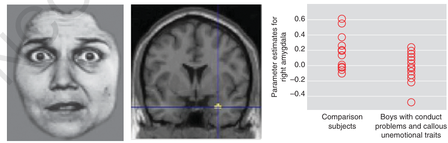 Jones, A. P., Laurens, K. R., Herba, C., Barker, G., & Viding, E. (2009). Amygdala hyporeactivity to fearful faces in boys with conduct problems and callous–unemotional traits. American Journal of Psychiatry, 166, 95–102.