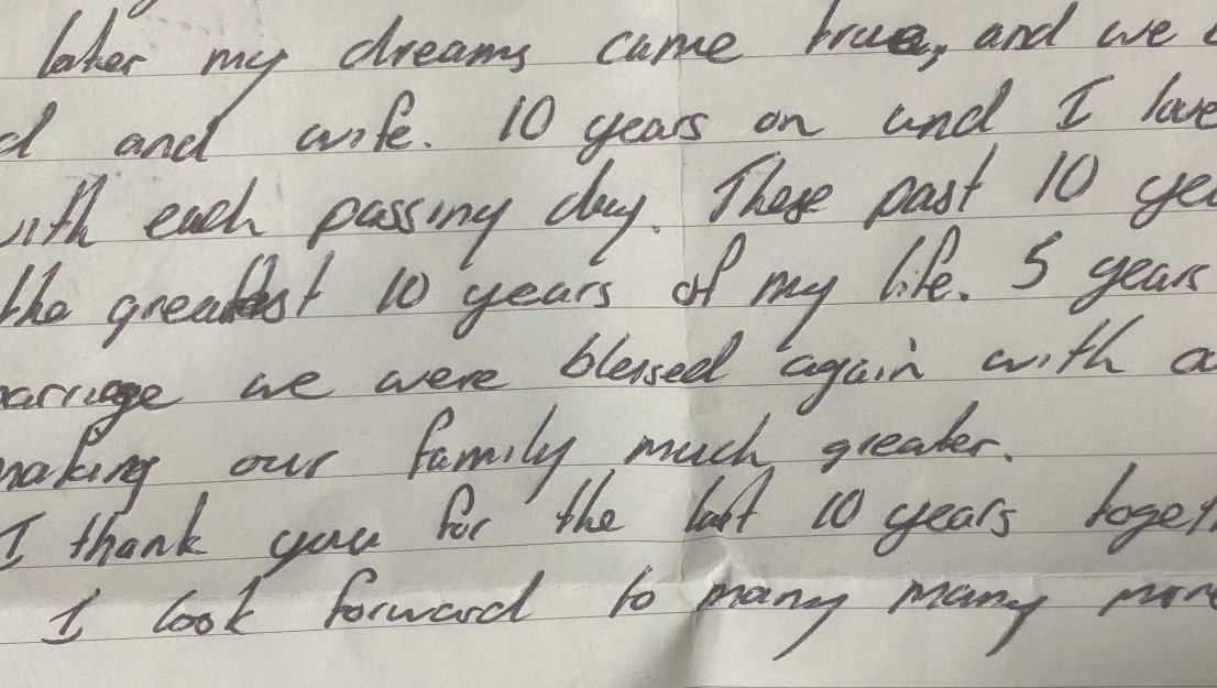당일 나는 남편이 꼬깃꼬깃 나를 위해 써준 시를 읽으며 감동했는데 그 쪽지를 잃어버리고 말아 아쉬웠다.
