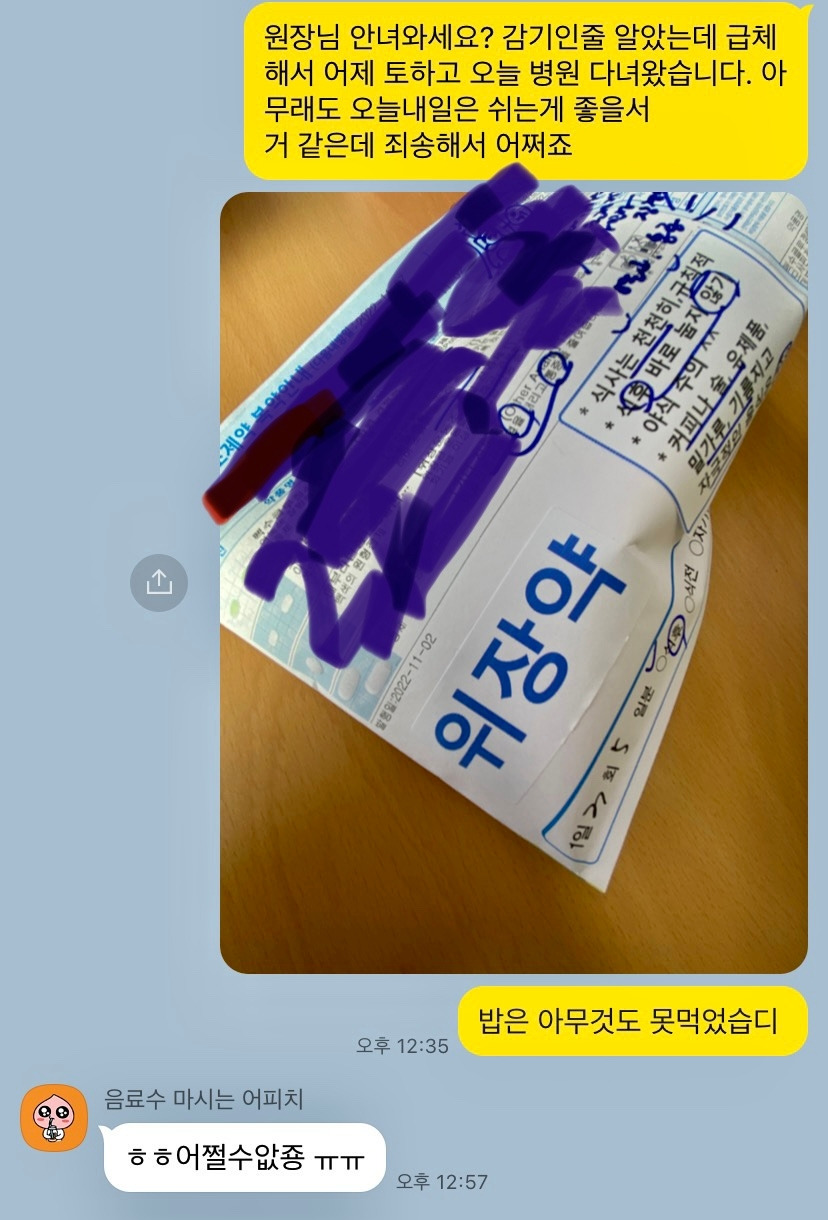 웬일로 몸이 으슬으슬 한기가 느껴져 트쌤에게 감기 기운이 있다는 핑계?로 하루 쉬기로 한다.
