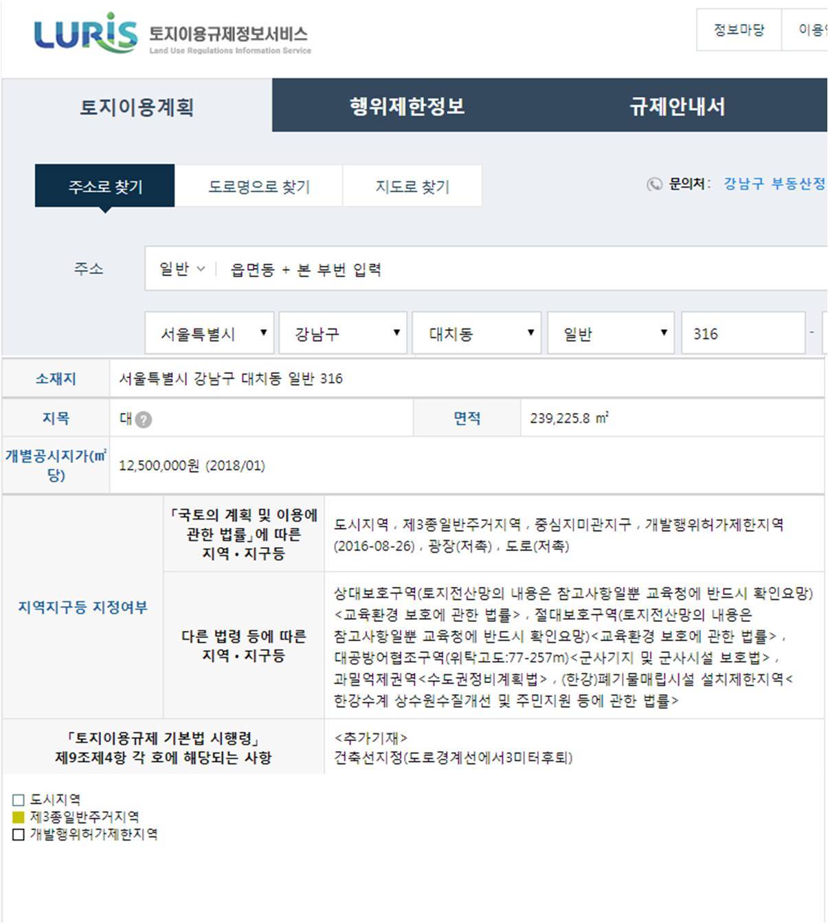 토지이용규제정보 (예) - 강남구 대치동 은마아파트
