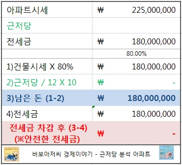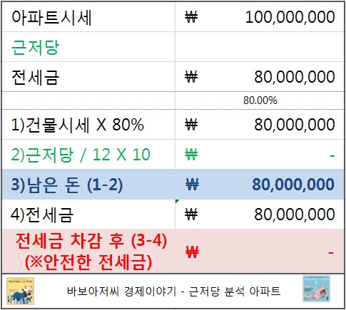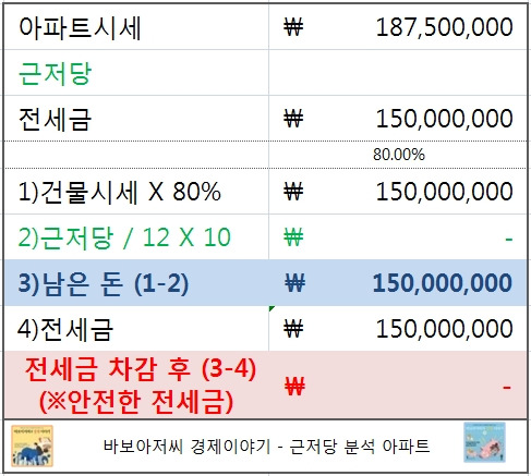 3) 보증금 빼기 (월세는 소액임차보증금 / 반전세 / 전세보증금)