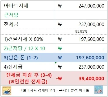 4) 돈 남으면 안전하고, 모자라서 마이너스 되면 전세금 떼일 확률이 높아진다.