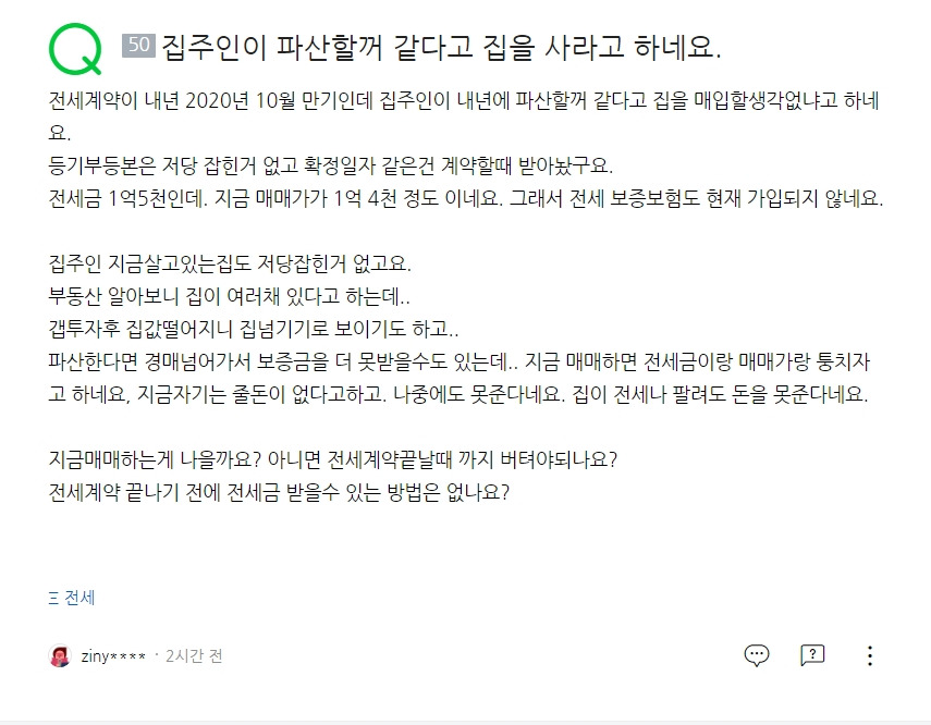(* 하루 평균 전세 보증보험 + 갭투기 사기 + 역전세 사기 관련 답변 최소 50개 내외 X 365일 = 1년 18,250개 X 3년 = 5만개 이상 답변한 바보아저씨... ㄷㄷㄷ... ;;; *)