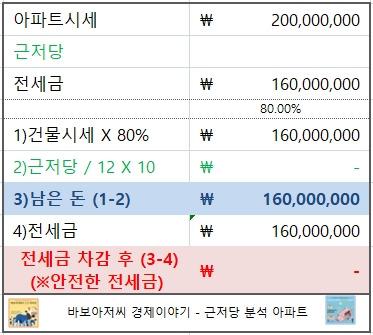 4) 돈 남으면 안전하고, 모자라서 마이너스 되면 전세금 떼일 확률이 높아진다.