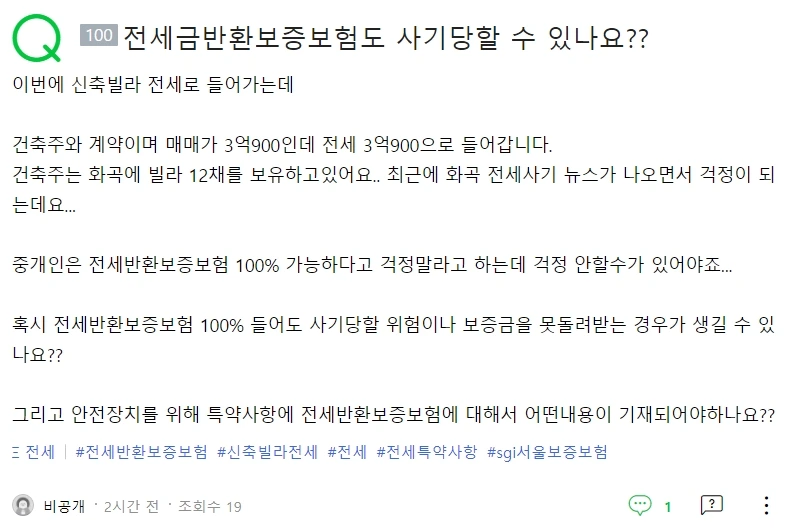 HUG 보증보험을 들면 => 오히려 전세사기를 당함. 조심.