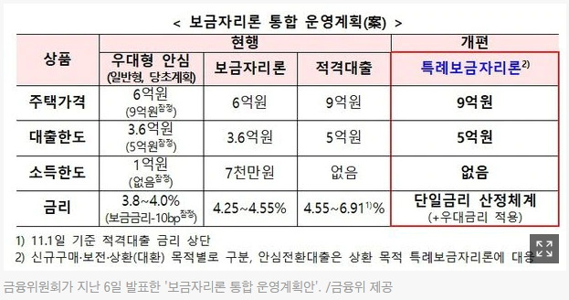 - 보금자리론 상한 집값 6억 -> 9억 완화!