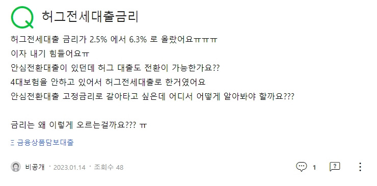 2) 부부합산소득 초과해서 일반전세대출 금리 이자가 올랐다.