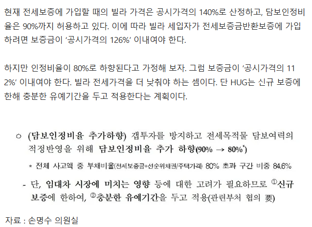 이제와서 공시가 112% (전세가율 80%) 까지 보증 한도를 끌어 내리겠다는 거다.