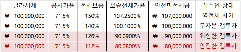 2) 전세가율 80~90% 투자해 놓고, 시세 떨어진 선량한 집주인들도 일부 피해