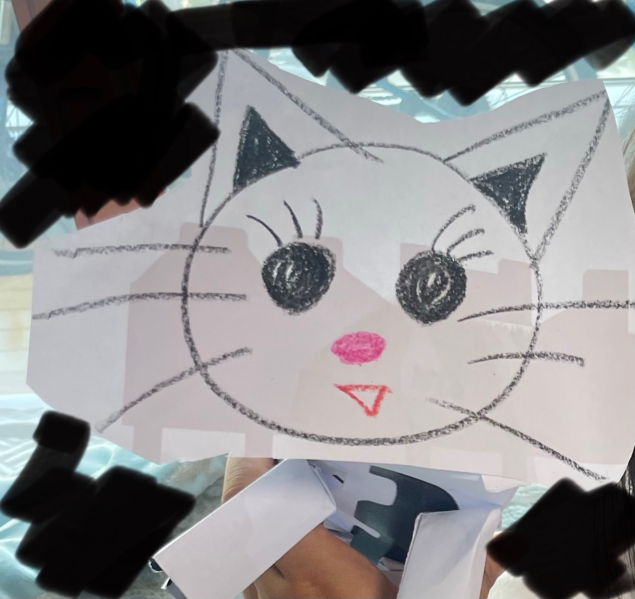 몸통에 손을 집어 넣어서 움직이는 고양이를 표현하면 아이가 매우 재밌어한다. 고양이 말고도 아이가 좋아하는 동물을 그리면 좋을 것 같다.