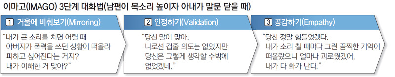 그러니 어린 시절의 경험, 채워지지 않았던 욕구, 상처가 건드려지는 부분을 잘 알고 이해하고 있다면 배우자에게 미리 얘기해줄 수 있습니다. 예를 들면, “사실 나는 엄마가 일하시느라 식사를 제 때 챙겨주지 않아서 서운했고 내 배우자가 밥만큼은 꼭 챙겨주길 바라왔어.” 라고요. 부인도 마찬가지입니다. “우리 아버지는 내가 무슨 얘기를 하면 듣는 둥, 마는 둥 하시고 혹 말씀하셔도 무시하는 투로 대꾸하셨어. 자기가 내 말을 듣지 않는 것처럼 보이면 나도 모르게 화가 나.” 라고요.