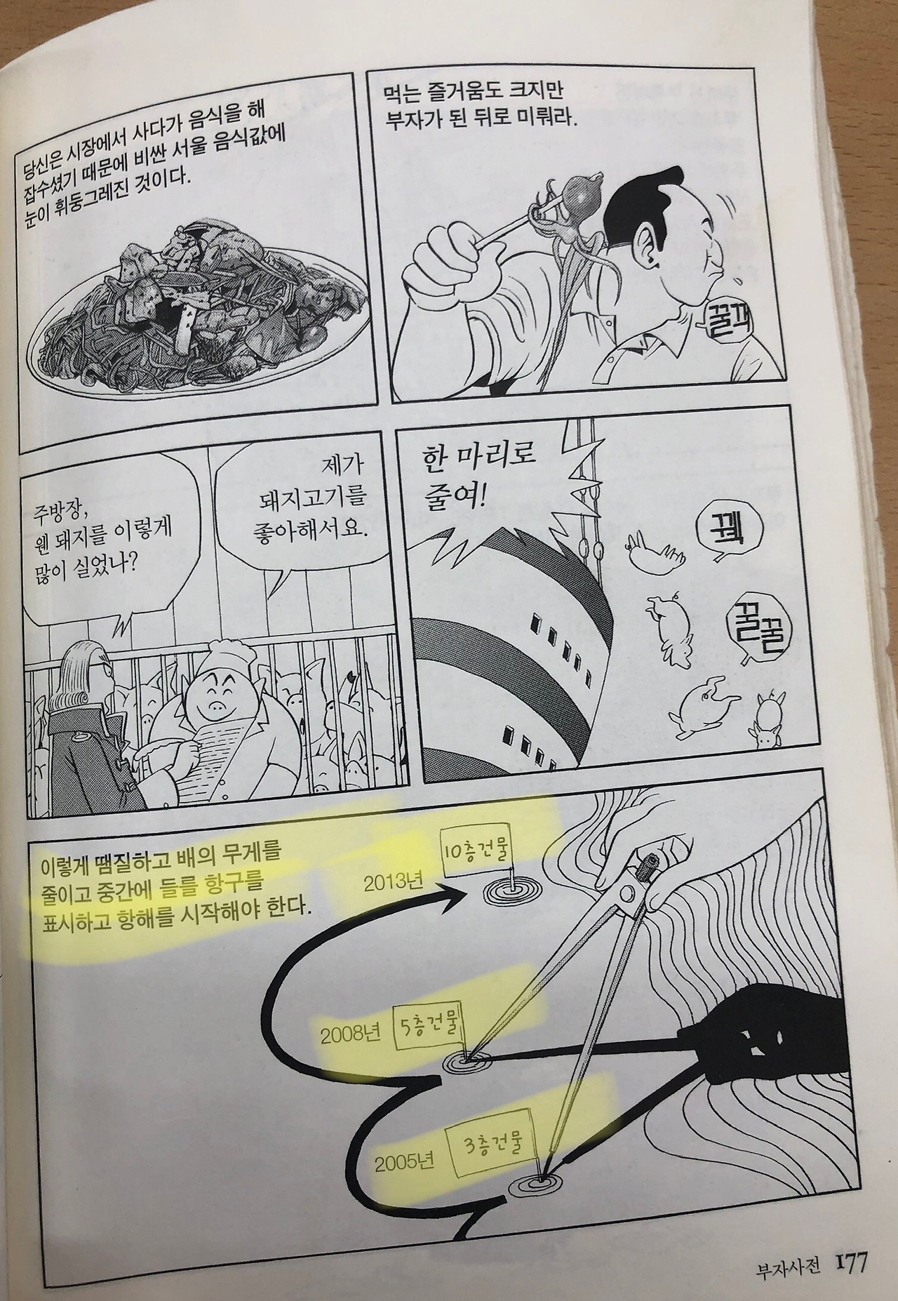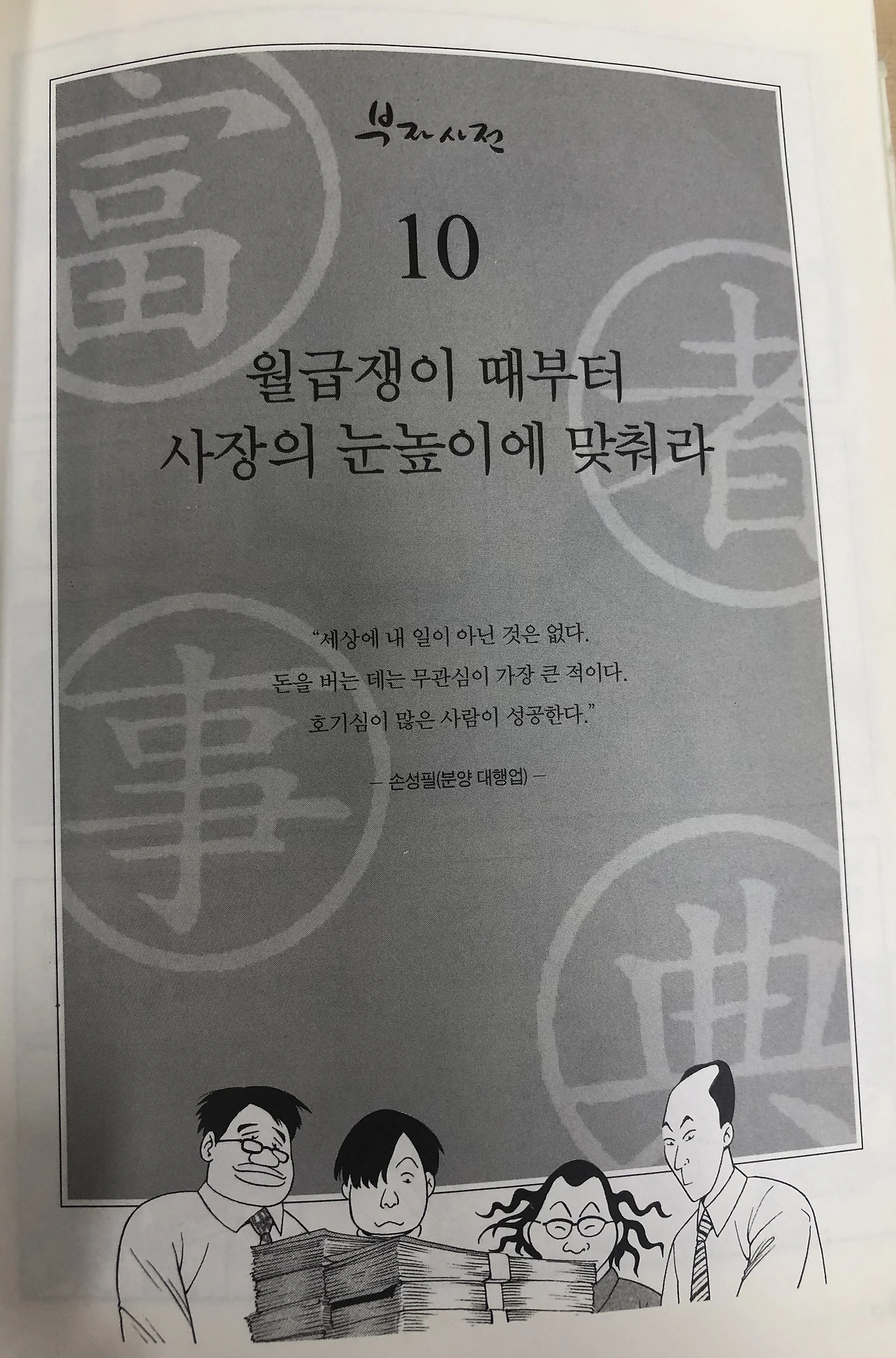 작년과 더불어 새해에도 재테크, 투자, 주식, 코인 그리고 부동산이 화제입니다. 관련 서적들이 언제나 상위에 랭크되어 있고 도서관에서 관련 책들은 보통 대출 중입니다. 인기가 많다는 뜻이지요. 저 또한 2022년 한 해의 화두는 독립(獨立)입니다. 말 그대로 남에게 기대지 않고 혼자 힘으로 굳건히 서는 것. 저에게 독립은 두 가지로 나뉩니다. 하나는 경제적 독립이며 다른 하나는 정서적 독립입니다. 그중 경제적 독립에 한 발 다가서기 위해 ['부자 사전'_ 허영만]을 집어 들었습니다. 초판 발행된 지 15년도 더 된 책이지만 만화로 되어있어 읽기 쉽고, 시대를 초월하는 부자들의 공통점이 있지 않을까 하는 생각에서였어요.