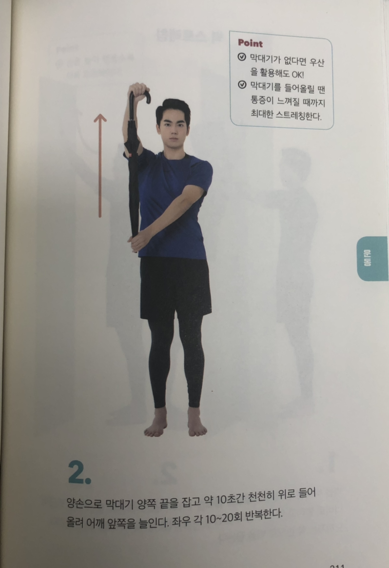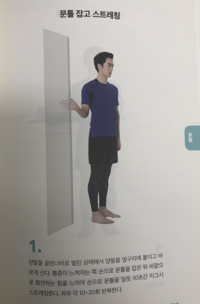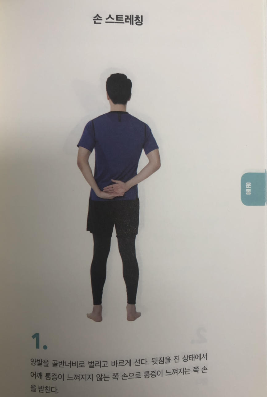 스트레칭의 경우 수술을 필요로 하는 극심한 경우가 아니라면 약간 무리하여 통증을 견디며 스트레칭을 할 필요 있다고 말하고 있어요. 그리고 맨손으로만 스트레칭에 어려움이 있다면 보조 도구로 수건이나 막대를 이용하는 것이 도움이 된다고 해요. 그럼 구체적인 스트레칭 방법을 알아보죠.
