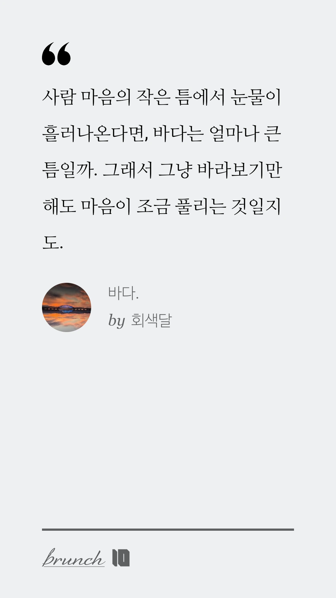 사람 마음의 작은 틈에서 눈물이 흘러나온다면, 바다는 얼마나 큰 틈일까. 그래서 그냥 바라보기만 해도 마음이 조금 풀리는 것일지도.