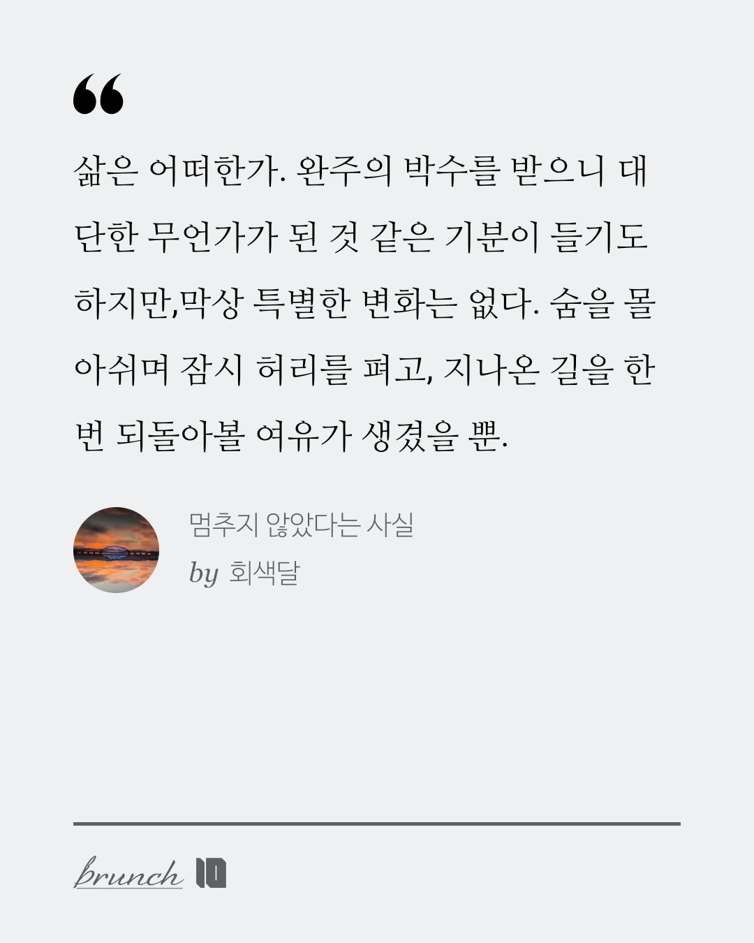 삶은 어떠한가. 완주의 박수를 받으니 대단한 무언가가 된 것 같은 기분이 들기도 하지만,