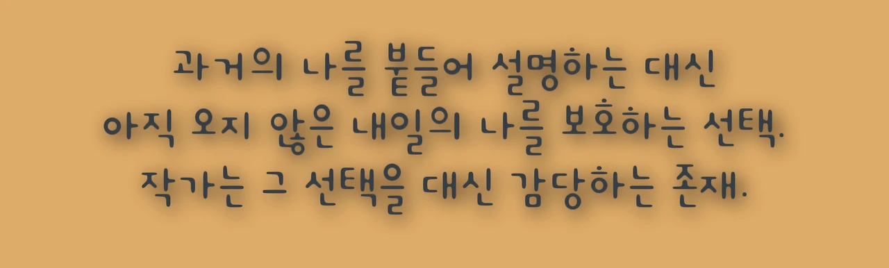 그런데도 시간은 갔다. 정신 차려보니 어느 던 10년이 지나 있었다. 그동안 나는 거의 일만 했다. 왜 그렇게 살았는지는 지금도 정확히 모르겠다. 도망치지 않으려고 한 건지 도망칠 힘이 없었던 건지는 굳이 나누지 않았다. 어차피 그때의 나는 다른 선택을 할 여유가 없었다. 그래도 살아는 있었으니 됐다.