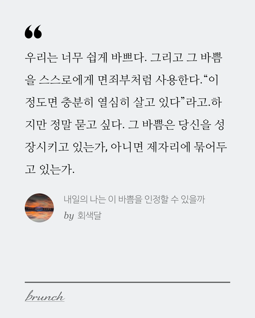 하지만 정말 묻고 싶다. 그 바쁨은 당신을 성장시키고 있는가, 아니면 제자리에 묶어두고 있는가.
