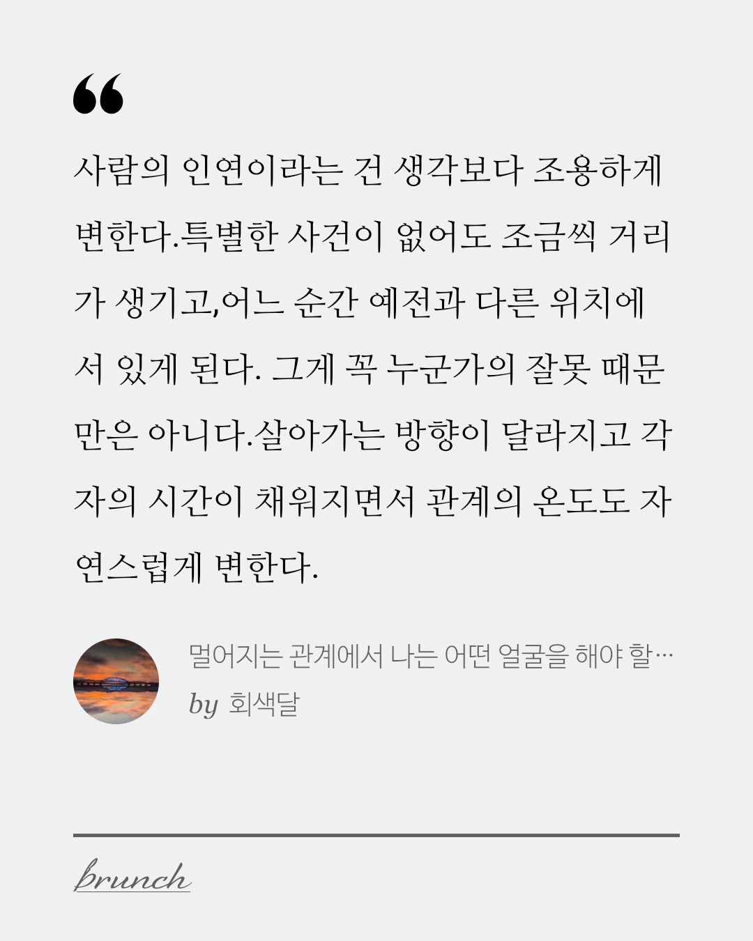 사람의 인연이라는 건 생각보다 조용하게 변한다.
