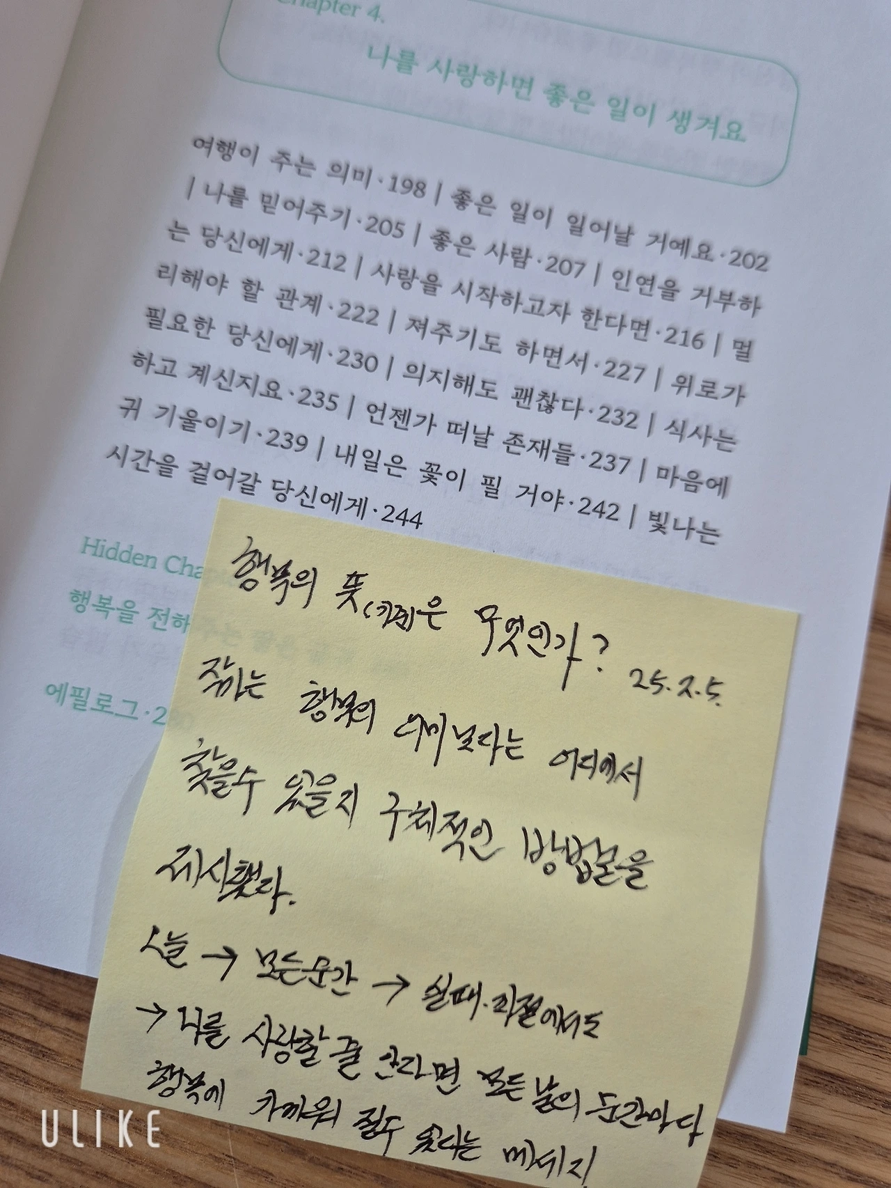 작가의 메시지는 위로와 격려가 담겨 있었지만 궁극적으로 자신의 행복을 깨닫는 자는 스스로의 위로도 만들어 낼 수 있음이었다.