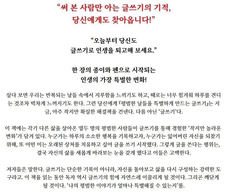 글 쓰기 하나면, 삶이 특별해집니다.