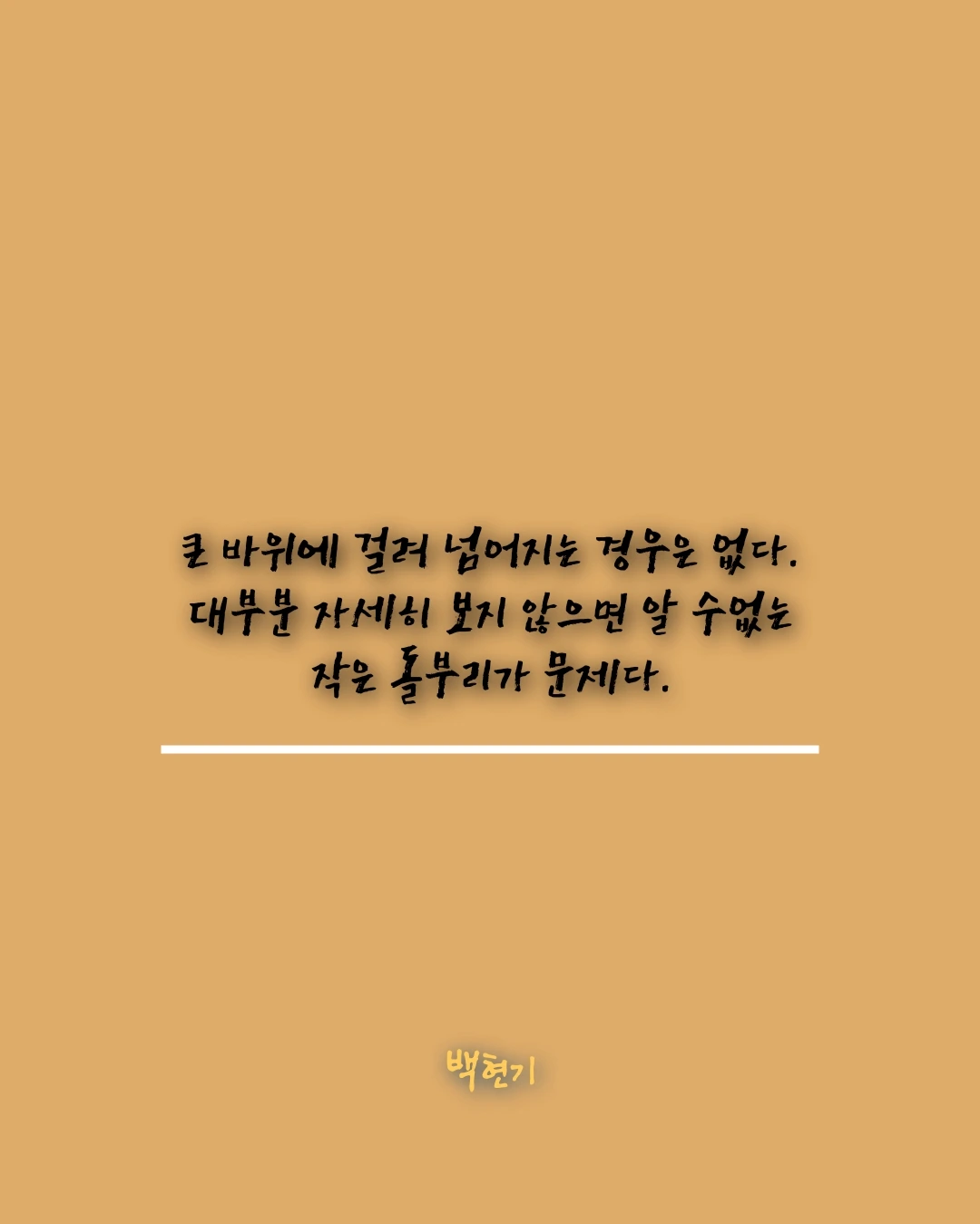 큰 바위에 걸려 넘어지는 경우는 없다.