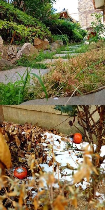 잘 익은 포도가 이유 없이 썩어 떨어진다. 작년에도 그렇더니 올 해는 괜찮겠지 했는데 착각이었다. 농협 약품점에 가서 물으니 탄저병이란다. 진작 뿌렸으면 괜찮지 않을까? 무공해로 재배하기가 영~ _ 2017년 8월 8일 화 맑음