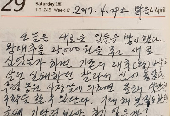 오늘은 새로운 일들을 많이 했다. 왕대추를 25,000원을 주고 새로 심었는가 하면 기존의 대추(왕) 나무도 살던 실패하던 잘라서 심어 놓았다. 후평 농원 사장 말에 의하면 올해 약간의 수확을 할 수 있단다. 기대해 봄 직도 한데 글세. 기다려 봐야 하지 않을까? _ 2017년 4월 29일 토 맑음
