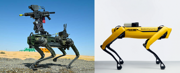 마지막으로 소개할 킬러 인공지능 로봇입니다. 미 육군이 중동에서 소총으로 무장한 AI 로봇 개를 테스트하고 있습니다. 보스턴 다이내믹스의 Spot과 비슷하게 생긴 모습이죠?