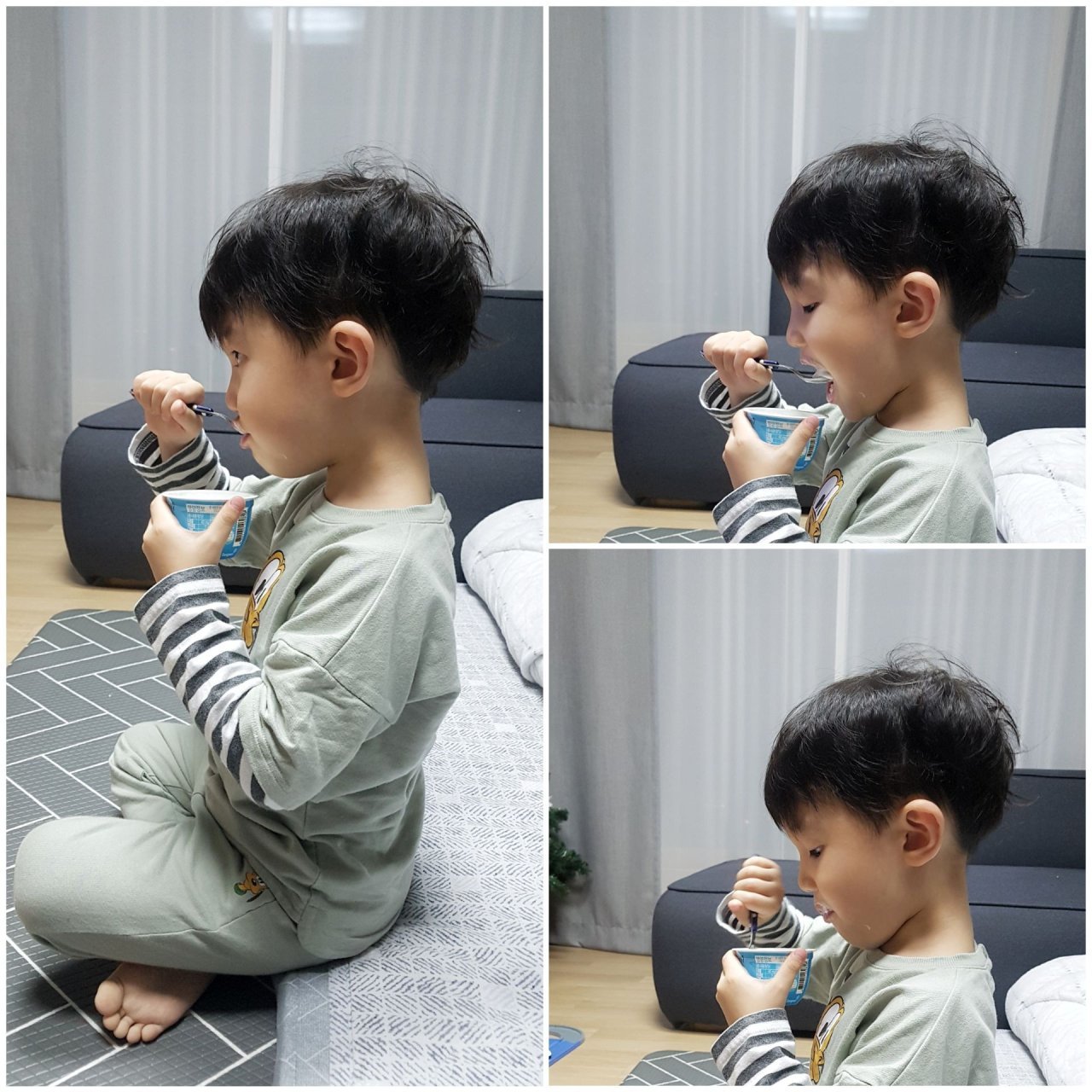 식사한 지 얼마 지나지 않아 밥 생각이 없다더니 아빠가 식탁을 차리는 모습에 시장기가 발동한 모양이다.