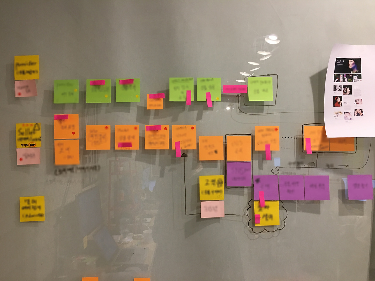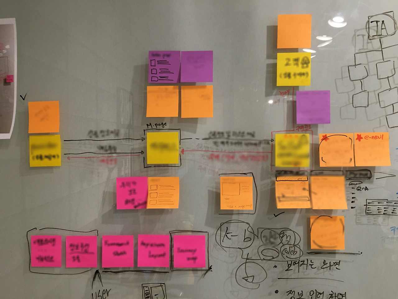 두 번째는 이야기 전달자로서의 역할입니다. UX디자인을 체계적으로 경험한 전문가라면 Service Flow, User Journey map, Touch point map, Key-path Scenario와 같은 산출물을 만들어보았을 것입니다. 단어를 보면 뭔가 어려운 작업처럼 느껴지겠지만 속성을 들여다보면 간단합니다. ‘이야기를 풀어놓는 작업’이라는 것. 서비스의 이야기, 사용자의 이야기, 서비스와 사용자가 만나는 이야기 등을 풀어놓는 작업입니다. 이야기를 풀어놓는 것은 전체를 한 눈에 바라볼 수 있게 해줍니다. 이야기의 흐름 중 단절된 부분은 없는지, 개선이 필요한 부분은 없는지, 놓치고 있었던 부분은 없는지 등을 확인할 수 있습니다. 큰 골격을 잡아 놓고 비어있는 부분을 찾아서 살을 붙일 수 있습니다. 화면 몇 개만 보고 '단편적'으로 접근하는 것이 아니라 '컨텍스트를 고려한 입체적 접근'을 가능하게 합니다. 표현방식에 대한 부담은 갖지 않아도 됩니다. 그냥 벽에 포스트잇을 덕지덕지 붙여서 이야기를 풀어놓으면 됩니다. 작업자들이 함께 볼 수 있고 빠른 수정이 가능합니다(그냥 전체를 갈아엎어 버릴 때도 용이함). 이렇게 UX 디자이너는 이야기에 집중해서 전체를 조망할 수 있게 해주는 이야기 전달자의 역할을 합니다.