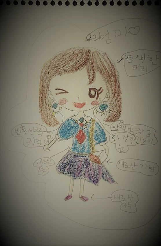 그 결과, 늦바람 난 엄마가 탄생했다. (큰아이가 그려준 엄마 모습)