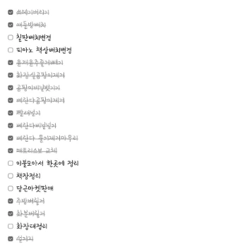 집이 조용하다. 내가 내는 소리만 들리고, 모든 물건이 가만히 있다. 영 낯설다. 늘 내 의지와 상관없이 집이 어지럽혀져 있고, 조용할 틈이 없는 우리 집이었는데... 공기가 달라진 느낌이다. 쾌적한 2박 3일을 위해서, 집 정리를 하려 한다. 가만 보니, 그간 언젠가 하겠다며 쌓아둔 묵은 일들이 많다. 화장실 물때 청소, 베란다 곰팡이 청소, 부엌에 늘어져있는 주방도구 정리, 영 시원찮은 배수구 뚫기, 일주일치 분리수거 등. 열심히 할 생각은 아녔는데 눈앞에 보이니 갈등이 된다. 아무도 없는 지금 해야 수월하게 할 수 있긴 하니까.
