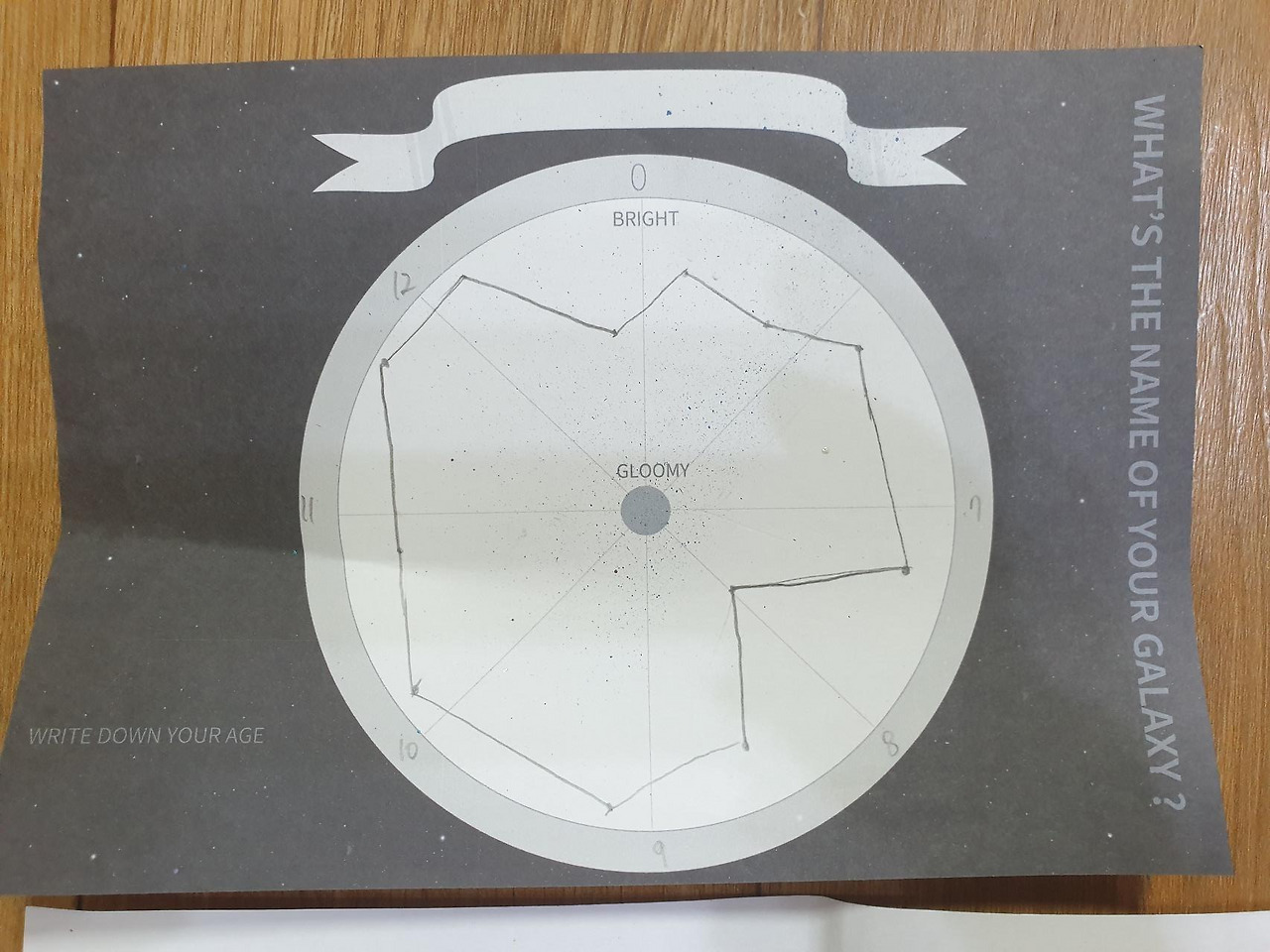 두 번째 수업까지는 시간이 좀 남아서 걷기로 했다. 신발이며 액세서리 쇼핑도 하고, 후식으로 티라미수와 커피도 먹고, 수업장소에 도착하니 선생님과 다른 수강생 두 명이 우리를 맞이한다. 그냥 그림 그리는 수업인 줄 알았는데, 자기소개도 하고, 인생그래프도 그려보고, 인생그래프에서 연상되는 무언가를 그리는 의미 있는 수업이었다. 내 인생그래프는 굴곡이 많다. 우울함이 바닥을 쳤다가 즐거움이 꼭대기를 쳤다가 뾰족뾰족하다. 열두 살 첫째의 인생 그래프는 어떨까. 6세부터 있었던 일을 회고하면서 열심히 적는데, 슬쩍 보니 행복한 일이 대부분이고, 불행한 일은 올해 코로나 때문에 우울하다는 것이다. 나쁘지 않군.