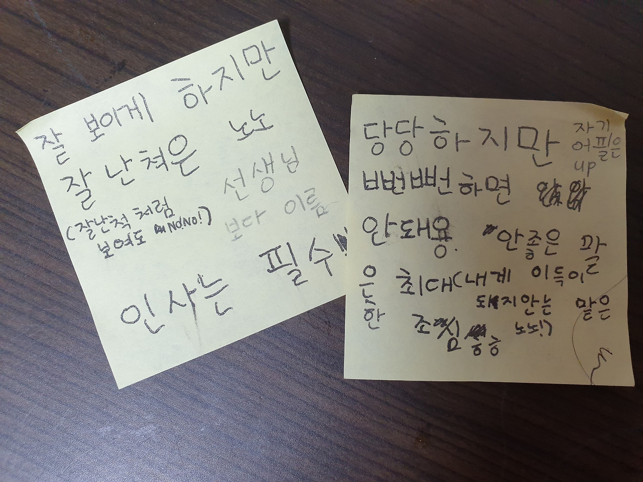 화상으로 하는 거라지만 면접 날이 다가오니, 두근두근한다. 면접이란 걸 본 게 15년도 더 전인데... 이력서 기반으로 업무 내용을 정리하며 나름대로 면접 준비에 매진하고 있자니, 둘째가 와서 슬그머니 쪽지를 하나 준다.