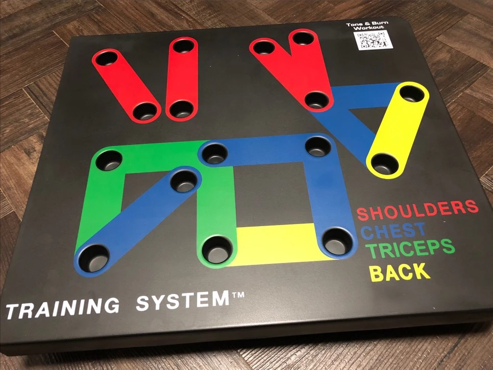 하드한 플라스틱으로 제조된 푸쉬업 키트 두 개를 중앙에서 연결하는 구조임.