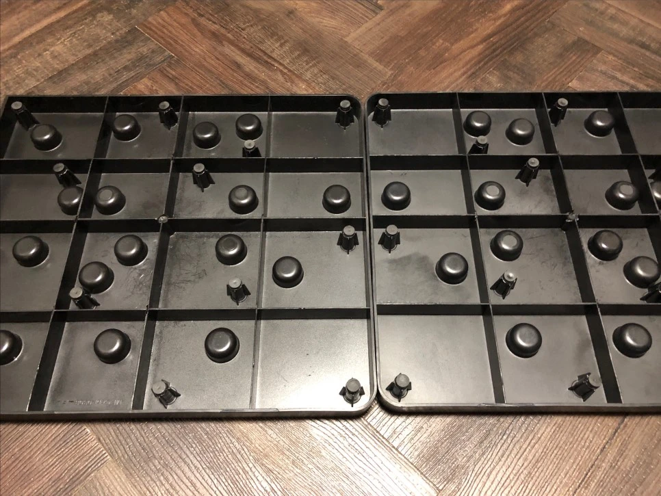 하단을 뒤집어 보면 밀리지 않게 고무 패킹이 되어 있는데 짝퉁들은 고무 패킹 몇 개가 누락되서 배송되거나 제품 두 개를 연결했을 때 들뜸 현상이 있다고 한다.