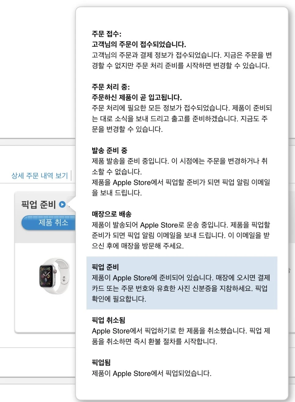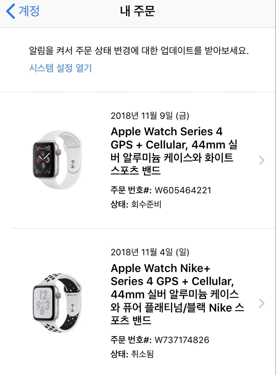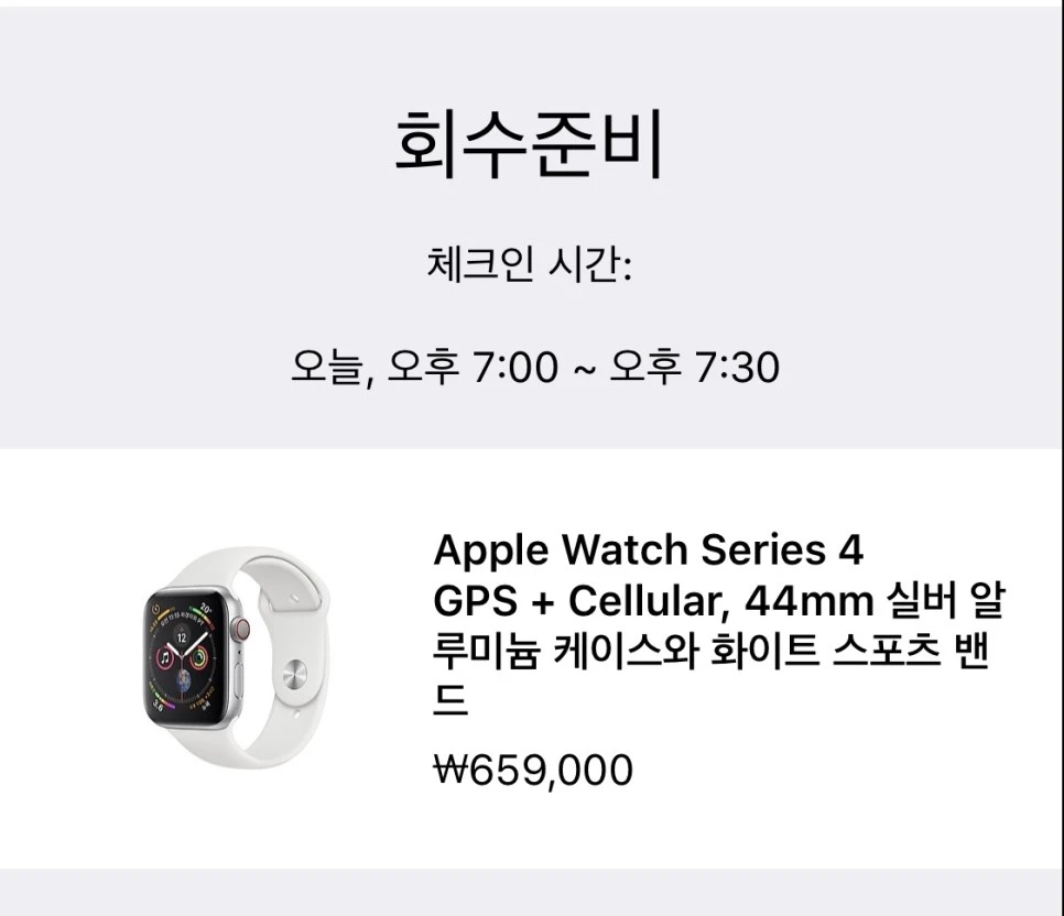 처음엔 배송으로 주문했다가 11월 말에나 받을 수 있다길래 픽업이 가능하다는 걸 보고 급히 결제 취소 후 다시 구매한 애플워치4.