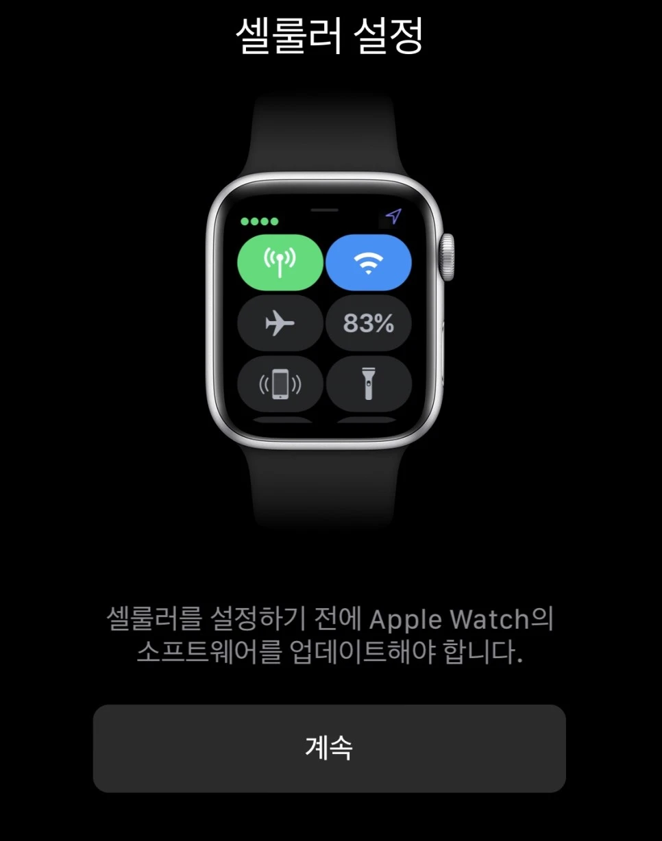 새로 배포된 애플워치 os 5.1을 깔아줘야 셀룰러 사용이 가능하다.