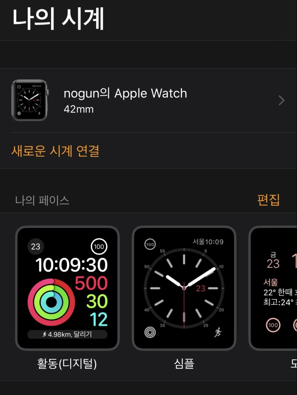 페어링이 끝나면 애플워치 페이스를 자신이 원하는 기능으로 자리잡아주면 된다.