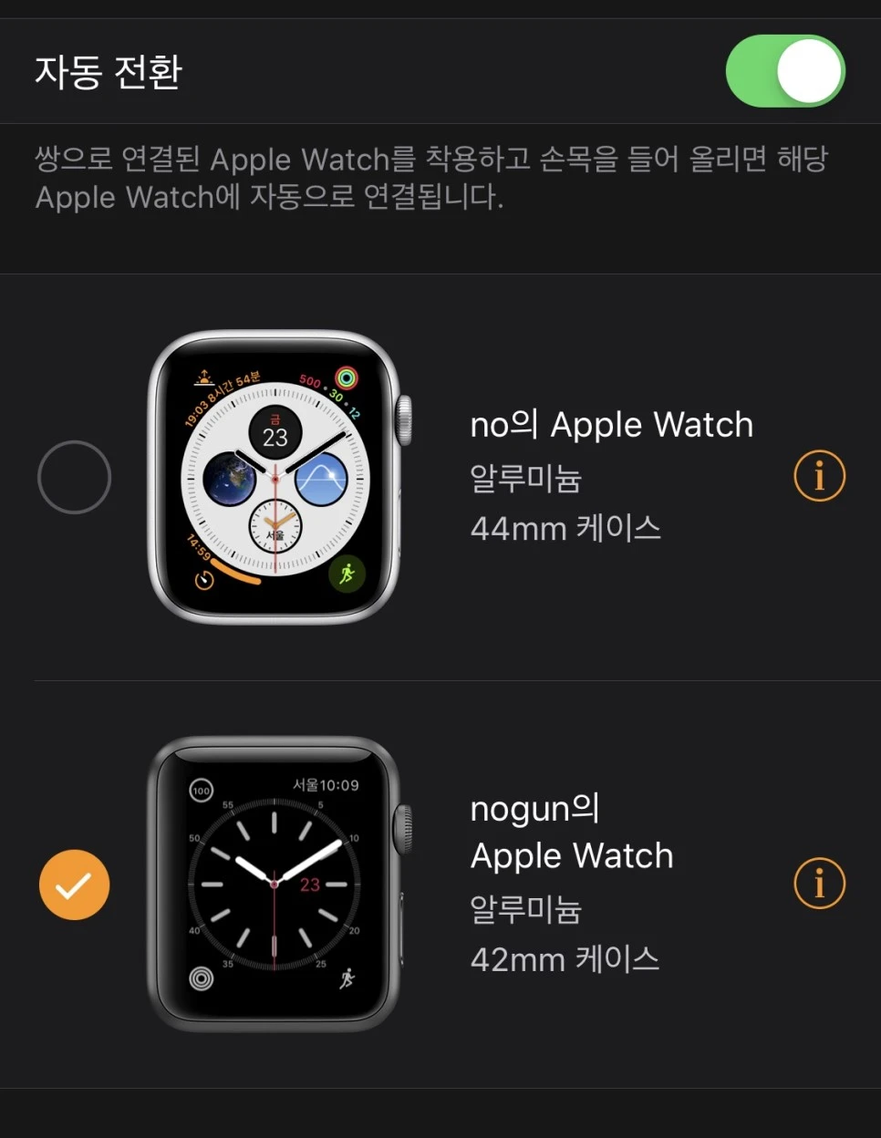 두 워치를 동시에 사용하는 것도 가능하다. 픽업할 때 직원분께 여쭤보니 다섯개나 사용하는 유저도 있다고 한다.