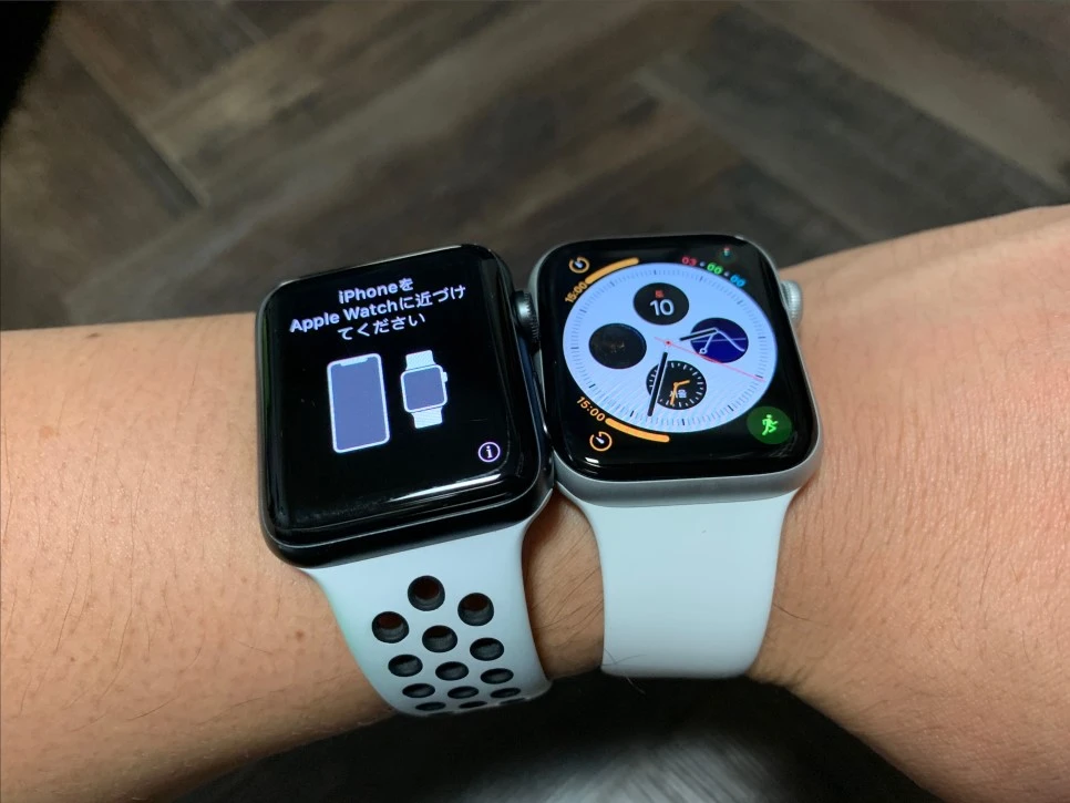 애플워치3와의 크기를 비교해 보면 거의 눈에 띄게 사이즈 차이가 나지는 않지만 ui 쪽에선 굉장한 발전을 이룬게 특징이다.